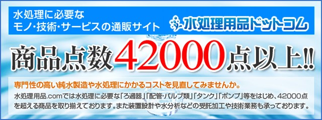 水処理用品.comでは水処理に必要な「ろ過器」「配管・バルブ類」「タンク」「ポンプ」「イオン交換樹脂」等をはじめ、42000点を超える水処理用品を取り揃えております。品質・サポート・価格と口コミや評判も高く幅広いお客様に愛されている水処理用品専門のショッピングサイトです。